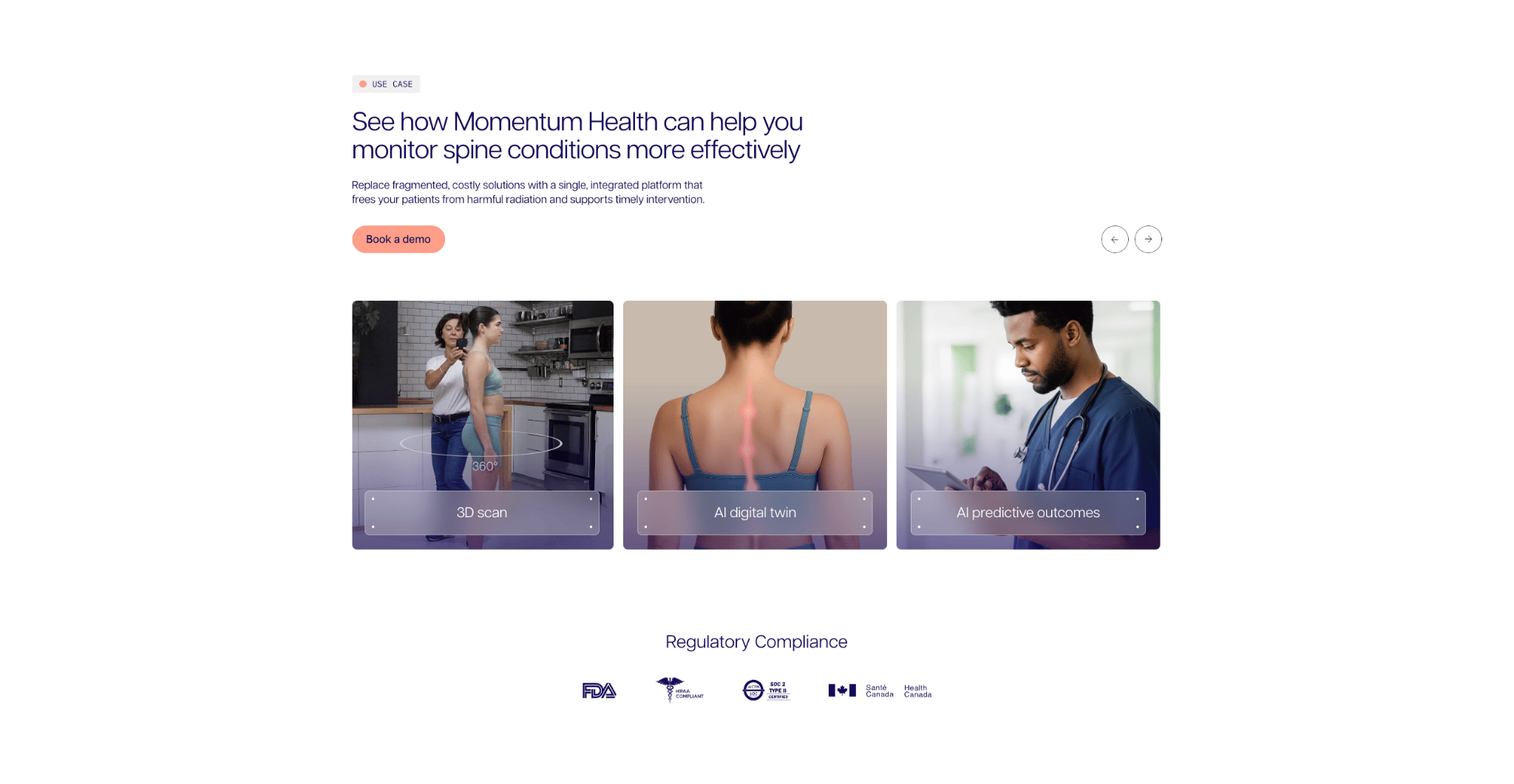 Momentum Health enables spine specialists to monitor their patients’ conditions remotely with 3D smartphone scans. So they can accurately detect progression in real-time, intervene early, improve outcomes, and free up time for patients in need of in-person visits.